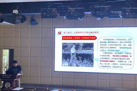 会议第六项,主题党课学习。本次党课学习的主题有三个,支部书记张映波同志带领大家学习了主题为“大力弘扬清廉守正,担当实干之风”的党课。杨忠坡同志带领大家学习了习近平总书记在湖北武汉考察讲话精神。黄佳乐同志带领大家学习了湖北省第十二次党代会精神。