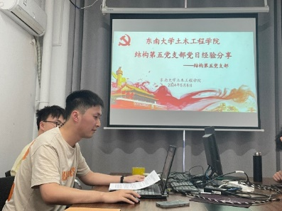 为全面贯彻落实习近平总书记关于青年工作的重要思想,深入开展党纪学习教育,强化高校学生党支部间交流,5月8日,水利工程系研究生第四党支部与土木建筑工程学院岩土与道桥系第二支部、华中科技大学土木与水利工程学院研究生党建工作中心与土木研究生第十一党支部、东南大学土木工程学院结构第五党支部、哈尔滨工业大学(威海)海洋工程学院土木2研究生党支部、重庆大学土木工程学院防灾研究生四党支部等五校九支部开展以“五四薪火激扬青春风采,五校学子共话青年有为”为主题的联学共建主题党日活动。