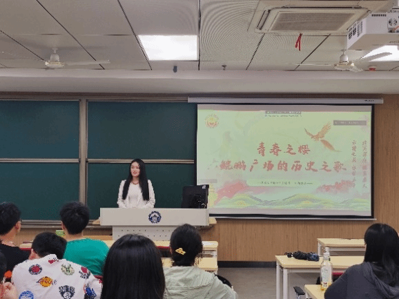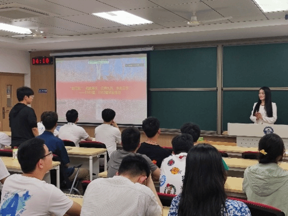 首先,由武汉大学博士生宣讲团讲师田胡冰格作主题为《青春之樱:鲲鹏广场的历史之歌》的微党课分享。她从鲲鹏广场筹建缘起、雕塑设计、精神象征等方面梳理了鲲鹏广场及其周边樱花景观的发展历程和校园文脉,宣扬了青年学子搏击云天、永远腾飞的青春精神,并号召在场党员同志们为中华民族伟大复兴而不懈奋斗。