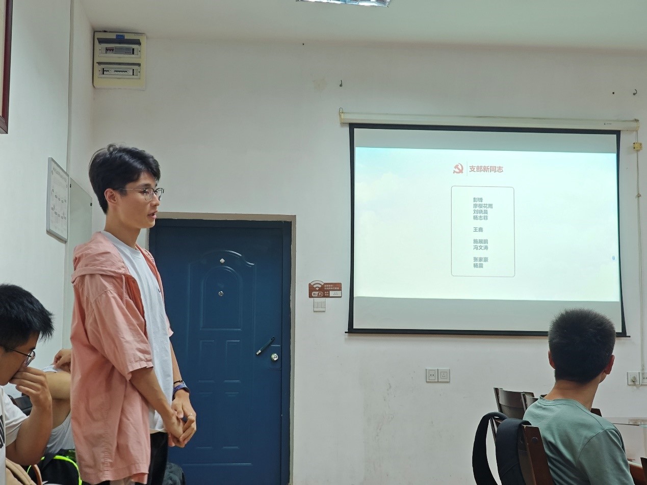 会议第一项,姜葆鑫同志主持开展支部迎新活动。支部新成员分别进行了自我介绍,内容涵盖家乡籍贯、导师、研究方向及兴趣爱好多个方面,并表明加入新支部后和老同志们和谐相处、互相学习、共同进步的期望和愿景。