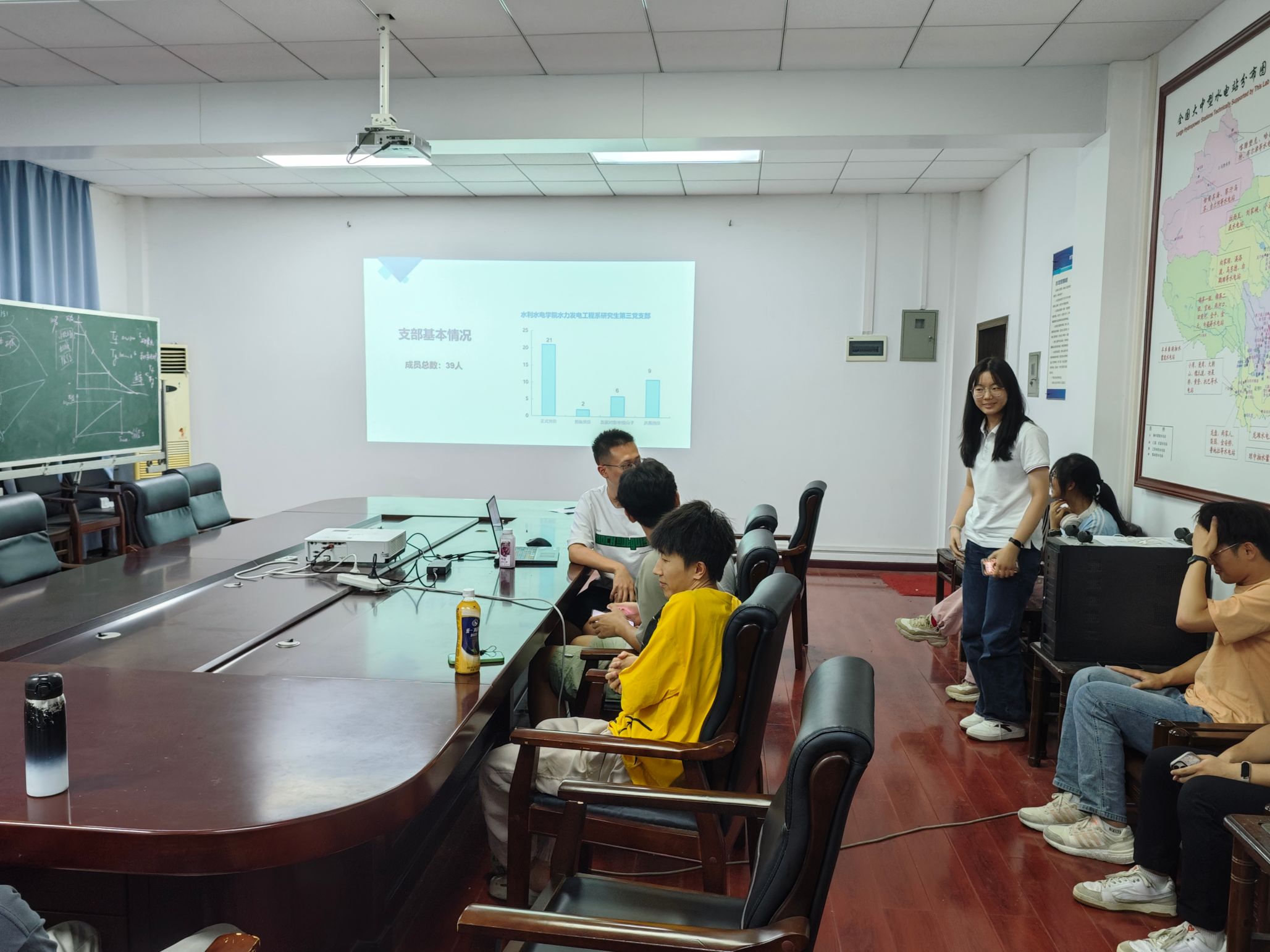 会议第一项,党支部新老成员见面自我介绍。支部书记邓楷诚首先简单介绍了本党支部的基本情况,目前成员总数为39人,13人为新加入成员。为了便于日后交流和支部工作的开展,由支部书记邓楷诚开始,支部各个新老成员都简单地进行了自我介绍。其中新党员代表李文新同志,表示要尽快融入支部,以更严格的标准要求自己、履行党员义务,与党支部成员齐心协力互学互助,共同进步。支部老党员们与新加入成员进行了亲切的交流,对他们的加入表示热烈欢迎,并详细介绍了支部的基本情况,鼓励他们积极参与支部学习,为支部建设建言献策,贡献智慧和力量。水力发电工程系研究生第三党支部以此次新老成员见面自我介绍为起点,让新加入成员感受到党组织的关怀和温暖,帮助他们更全面地了解支部、融入支部,增强对党组织的认同感和归属感,激发党员参与支部建设的积极性和主动性,更好地履行党员义务。