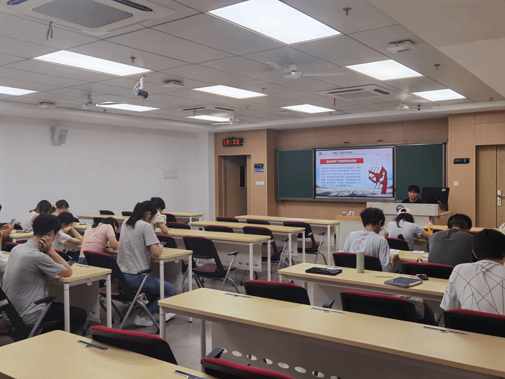 9月20日晚上18:30,水文水资源系研究生第三党支部在工学部主教A209会议室召开了新学期第一次组织生活会暨换届迎新交流会。会议由党支部书记杨家辉同志主持,支部全体成员参加本次会议。会议包括三部分内容:党课学习、支部换届大会及支部迎新会,本次党课共有两个主题:一、深入学习贯彻党的二十届三中全会精神;二、全面贯彻习近平新时代中国特色社会主义思想,弘扬李德仁院土精神。