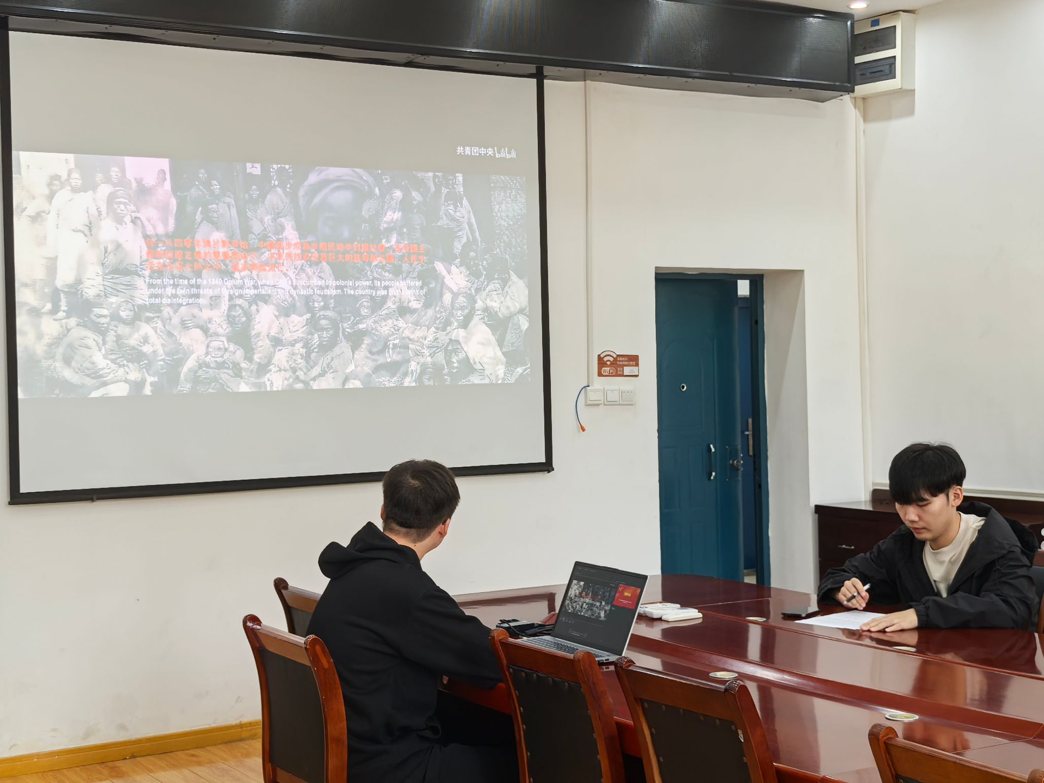 会议第二项,李晓东同志带领大家观看《建国大业》等红色电影。2024年是中华人民共和国成立75周年,七十五载波澜壮阔,七十五年春华秋实,党团结带领全国各族人民历经风雨洗礼、走过峥嵘岁月,铸就了今日的辉煌盛世。李晓东同志通过分享自己与祖国共成长的故事,以亲身经历展现了一名青年党员的爱国情怀和奉献精神,激励大家不忘初心、牢记使命、共同奋斗,充分展现了新时代学生党员的风采和对祖国母亲深深的祝福。