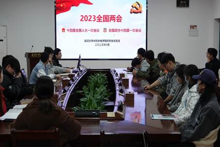 会议第一项,由水力发电工程系研究生第七党支部党员黄喜文同志带领全体与会同志进行2023全国两会精神学习。黄喜文同志对两会概况和议程进行了详细介绍,并指出了重点学习内容,与会同志深入了解了我国过去五年所取得的成就。