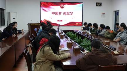 会议第二项,在水利水电工程本科生党支部的三位同志带领下,进行国防建设教育学习。三位同志依次以“新时代的中国国防”、“中国梦 强军梦”和“国防建设”为主题,通过介绍近年来我国军事国防事业取得的巨大进步与坚如磐石的军民军政关系,带来了一堂生动深刻的国防教育课。