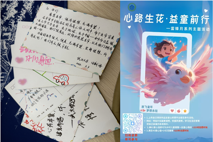 2025年3月9日,由研究生会主办, “益童前行”乡村振兴项目组协办的“心路生花 益童前行”校园公益活动在武汉大学圆满收官。本次活动历时7天,吸引了武汉大学众多师生及校外爱心人士的积极参与,线上线下联动,共同为山区留守儿童送去温暖与关怀。