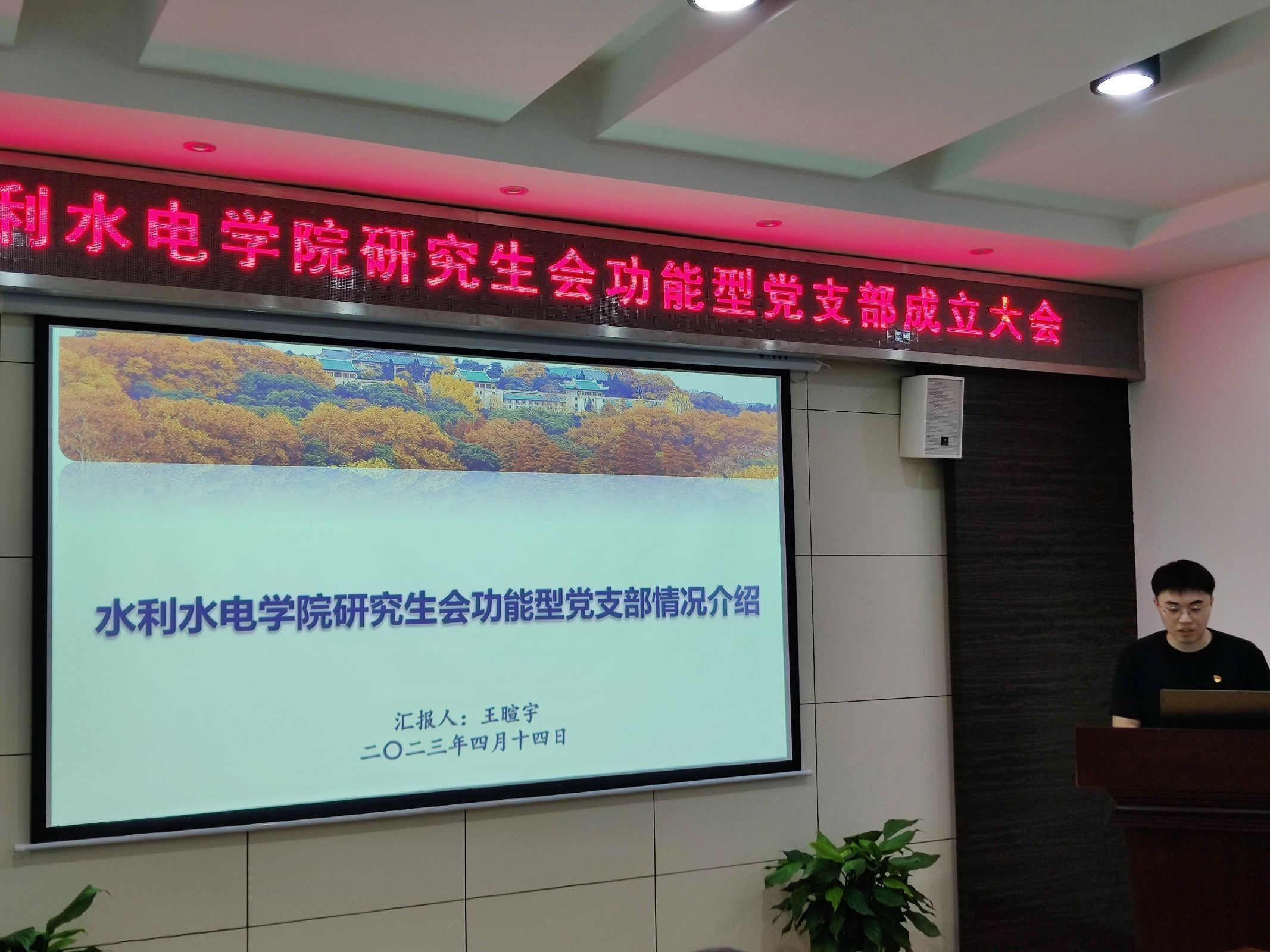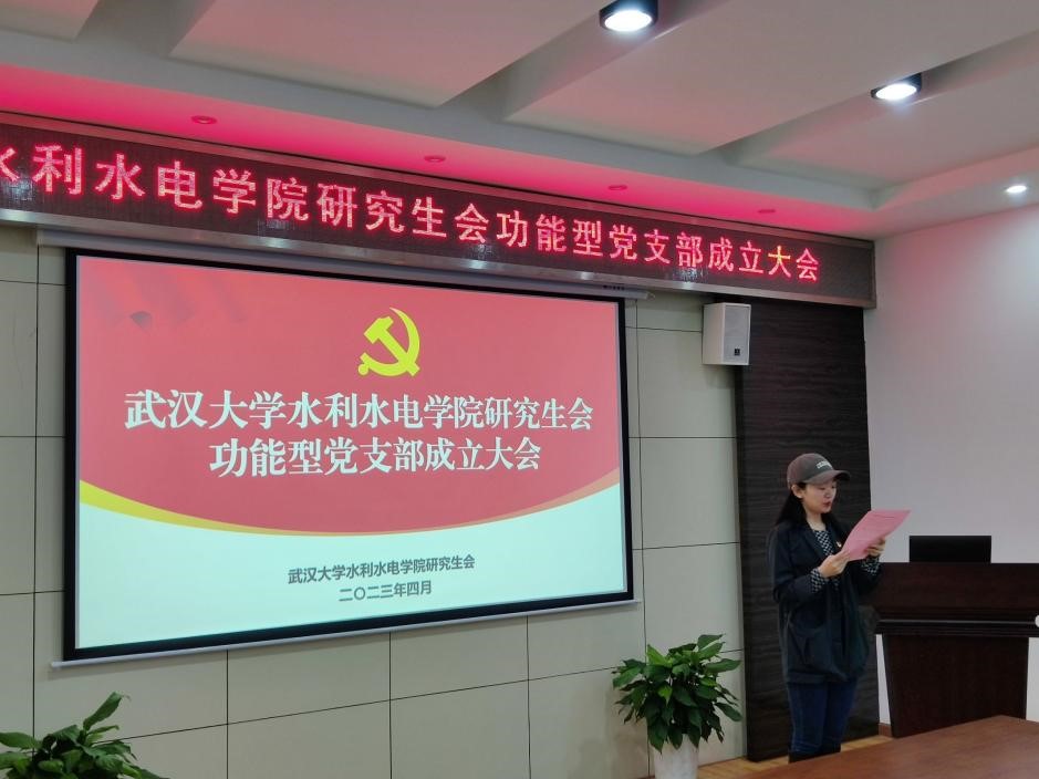 首先陈曼雨老师宣读了院党委《关于同意成立研究生会功能型党支部的批复》。为进一步加强党对研究生会工作的领导,充分发挥党组织和党员同志在研究生会中的思想引领和先锋模范作用,决定在水利水电学院研究生会中成立功能型党支部。