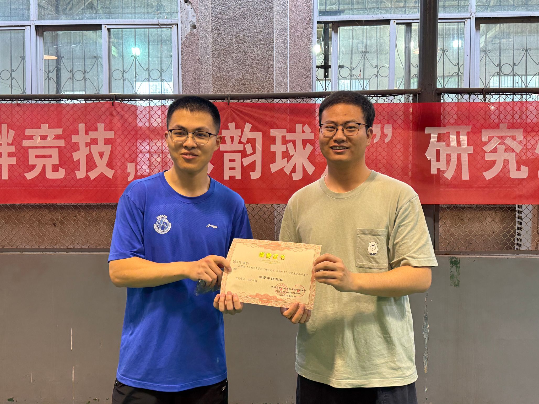 近日,由研究生会文体部主办的2025年“珈水弦歌,乒然心动”研究生乒乓球赛在工学部体育馆乒乓球馆火热开赛。本次赛事吸引了学院全体在读研究生积极参与,历经激烈角逐,于5月10日圆满落下帷幕。