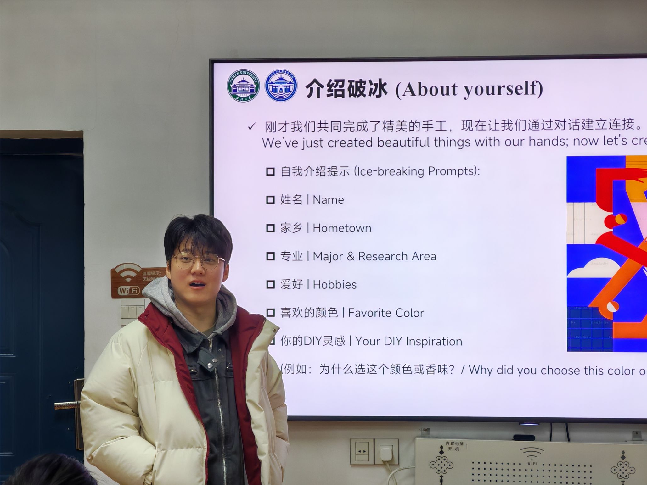 自我介绍后,同学们还围绕生活灵感与科研心路历程展开了深入交流。大家分享了家乡独特的文化符号如何成为科研压力下的心理慰藉,并探讨了在水利工程等专业领域求索时所需具备的耐心与韧性。从初抵江城时的好奇探索,到在珞珈山下求学生活的点滴趣事,生活化的叙述中处处流露出对多元文化的尊重与包容。通过这种高品质的同辈对话,同学们不仅展现了积极向上的精神面貌,更在交流中寻找到了跨越地缘的情感共鸣。