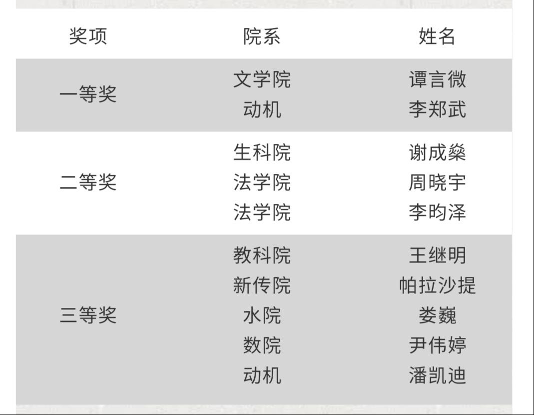 比赛分为初赛和决赛两个阶段。初赛面向全体武汉大学研究生,采取录音投稿形式,由专业评委打分,取平均分最高的15位选手进入决赛。决赛于“全民k歌”app歌房进行,分为两轮,第一轮各位选手依次献唱,根据专业评委和现场大众评审的打分,得分前十名者进入第二轮;第二轮各位选手由第一轮得分倒序出场,分别演唱后决出本次比赛的一、二、三等级及优秀奖。最终,经过了激烈的角逐,来自文学院的谭言微和动机学院的李郑武获得了本次比赛一等奖。我院研究生娄巍获得三等奖的佳绩。