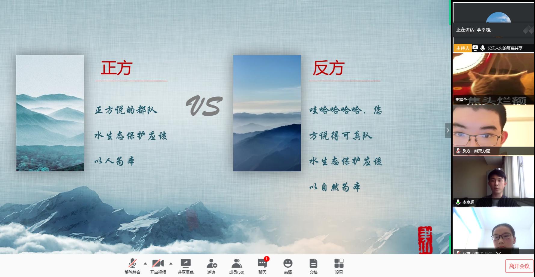 至此,本次“云辩论”活动圆满完成。此次活动的顺利开展不仅开拓广大同学的学科视野和提升专业素养,更促进了两校之间的合作共建与院系间的沟通交流。
