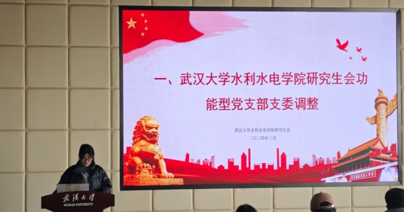 首先,本次会议对研究生会功能型党支部支委调整,水利水电学院研究生会功能型党支部现有正式党员29名,预备党员1名,其中支部委员会设书记1名,组织委员、宣传委员、纪检委员各1名。会议现场进行了水利水电学院研究生会功能型党支部支部委员会选举。经党支部选举,吴京龙同志当选党支部书记,郑美君同志当选组织委员,贾璐蔓同志当选宣传委员,余懿凡同志当选纪检委员。