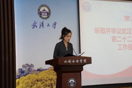 院党委书记李典庆在讲话中对学院研究生会工作表示充分肯定,对第二十二届研究生会成员的辛勤工作表示衷心感谢,并对二十二届研究生会再次荣获“武汉大学优秀研究生会”称号表达了赞扬。他对与会同学和研究生会提出了四点希望,第一,希望同学们进一步坚定理想信念、勇担时代重任;第二,希望同学们聚焦主责主业,增强科研意识;第三,希望研究生会继续发挥好联系广大同学的桥梁和纽带作用;第四,希望研究生会做好总结回顾,抓住机遇,革故鼎新。