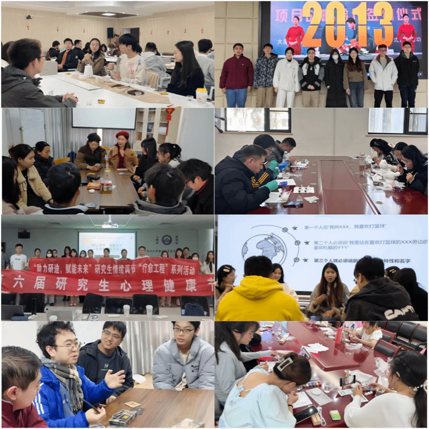 发布心理健康讲座与各类团辅活动通知49次 举办心理健康教育相关活动15次 组织心理朋辈辅导31周 举办跨学院联谊活动6次 第六届研究生心理健康节中承办1个精品项目、1个重点项目、2个一般项目 |