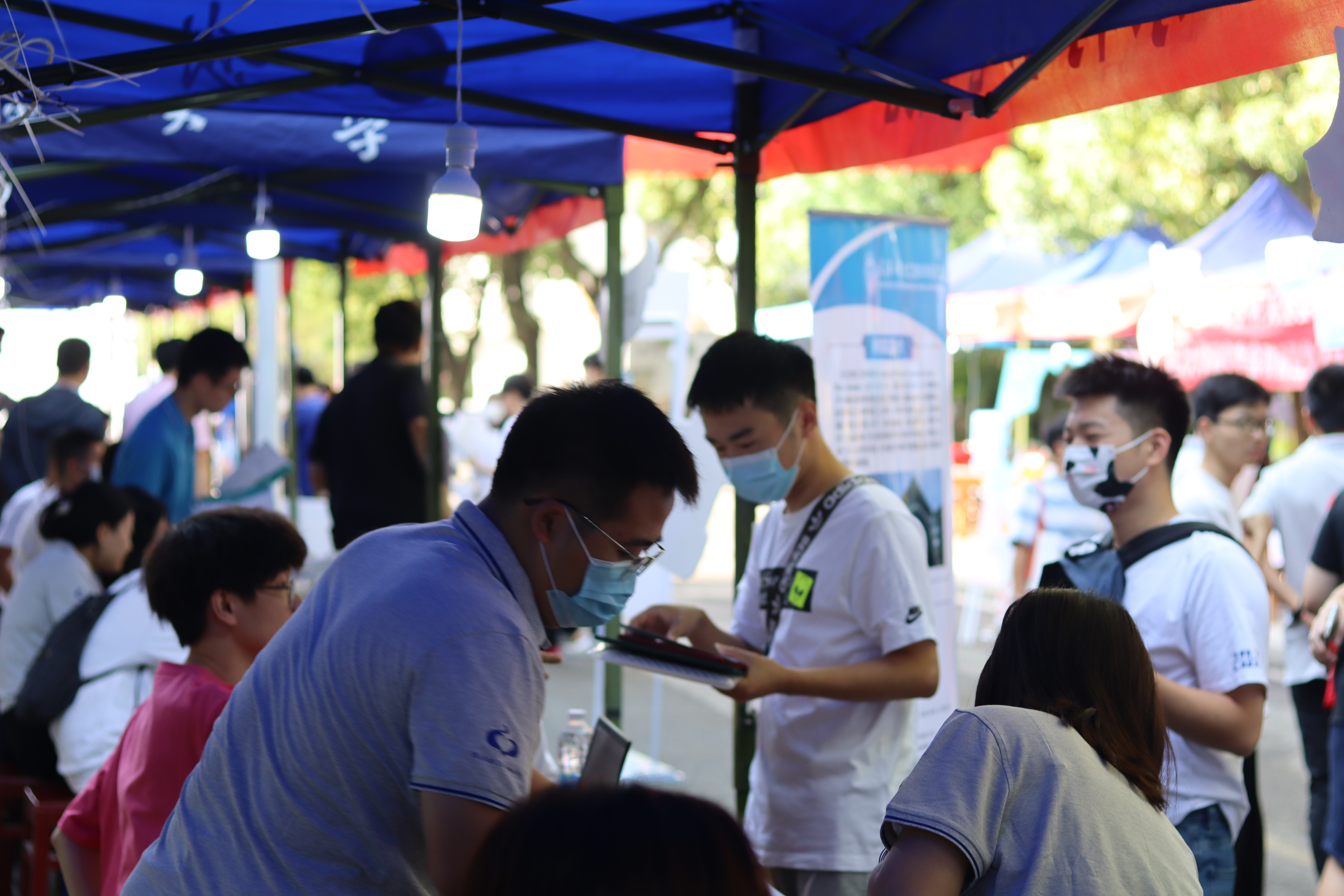 新生们在迎新点签名、拍照、打卡、留念