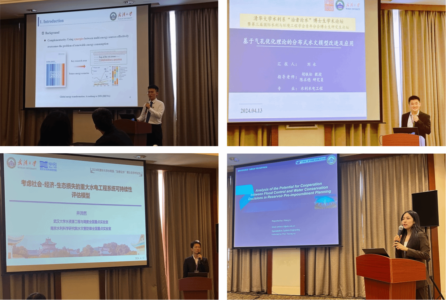 论坛环节,学院研究生李旭东、刘永在“水文科学、气候变化与碳中和”分会场分别作了题为《Short-term risk-management for hydro-wind-solar hybrid energy system considering hydropower part-load operating characteristics》和《基于气孔优化理论的分布式水文模型改进及应用》的学术汇报;井沛然在“工程项目管理、流域经济、资源环境与生态保护”分会场作了题为《考虑社会-经济-生态损失的重大水电工程系统可持续性评估模型》的学术报告,李想在英文专场作英文学术报告《水库汛末蓄水调度防洪与兴利决策的合作潜力探究》。李旭东、刘永获二等奖,井沛然、李想获三等奖,李想获评“优秀报告人”称号。