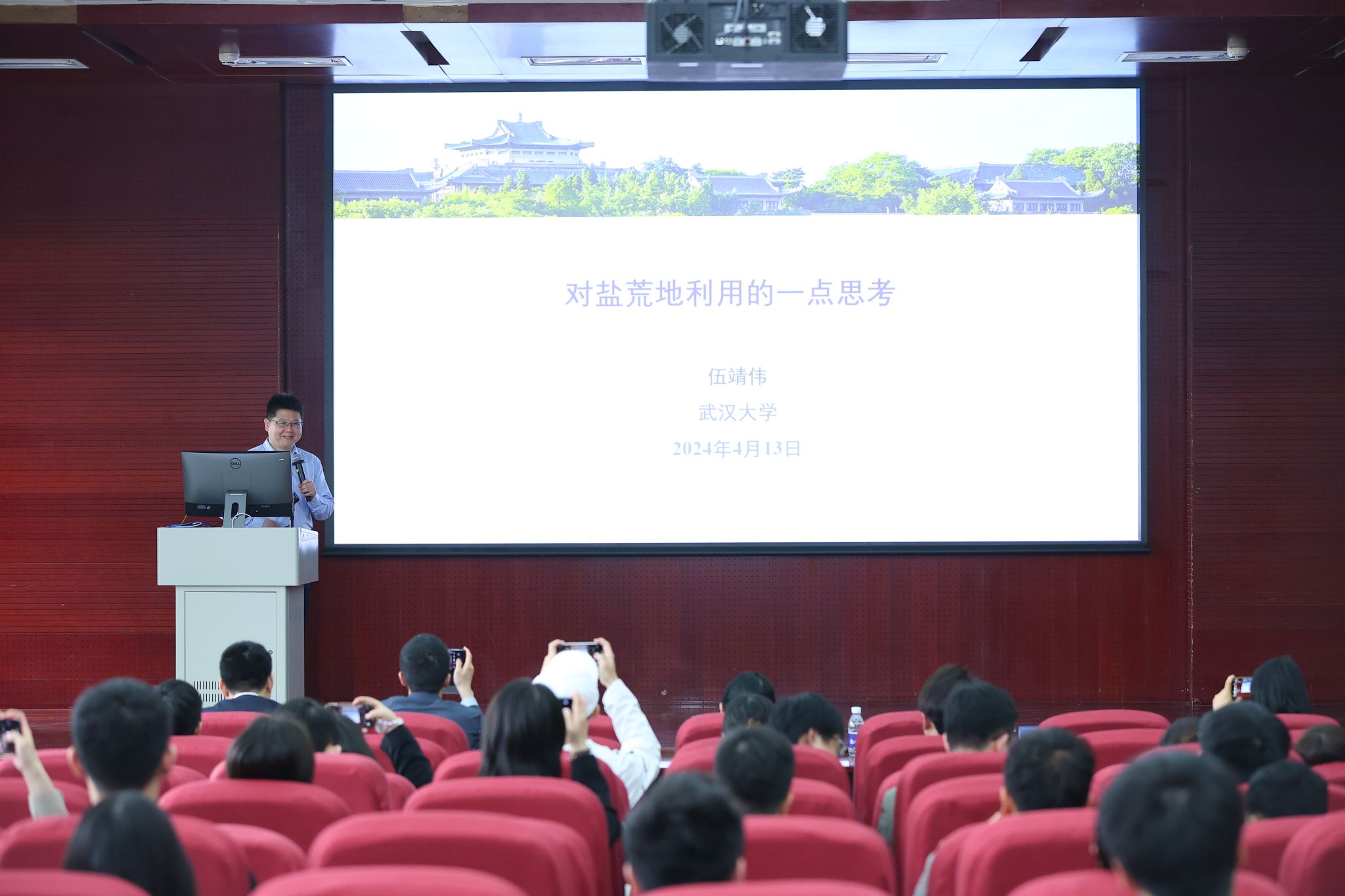 论坛开幕式上,伍靖伟教授作为兄弟院校代表致辞并作学术报告。他指出,学术交流与合作对于培养创新型水利人才具有不可替代的作用,本次论坛为水利同行提供了一个展示研究成果、交流学术思想、激发创新火花的宝贵平台。伍靖伟教授以《对盐荒地利用的一点思考》为题作学术报告,结合国情针对我国盐碱地开发利用中所遇到的必要性、有效性和规模性等问题展开讨论。