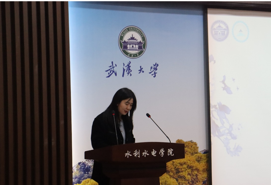 校研究生会主席团成员邓修齐发言,她对我院研究生会过去一年对校研究生会工作的积极支持表示了感谢,希望我院研究生会继续立足学科特色、在服务凝聚广大同学方面发挥积极作用。