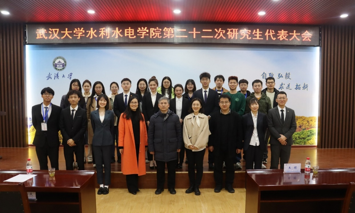 2023年3月1日下午,学院第二十二次研究生代表大会在8328报告厅成功召开。校团委副书记王园,院党委书记李典庆、院党委副书记龚文德、副院长伍靖伟,学工办主任左志香、院团委书记徐晟、院团委副书记陈曼雨、院团委副书记邓力源,校研究生会主席团成员邓修齐、院研究生会原主席团成员、各兄弟院系代表以及90余名学院研究生代表们参加了本次会议。会议由院研究生团总支书记吕舒键主持。