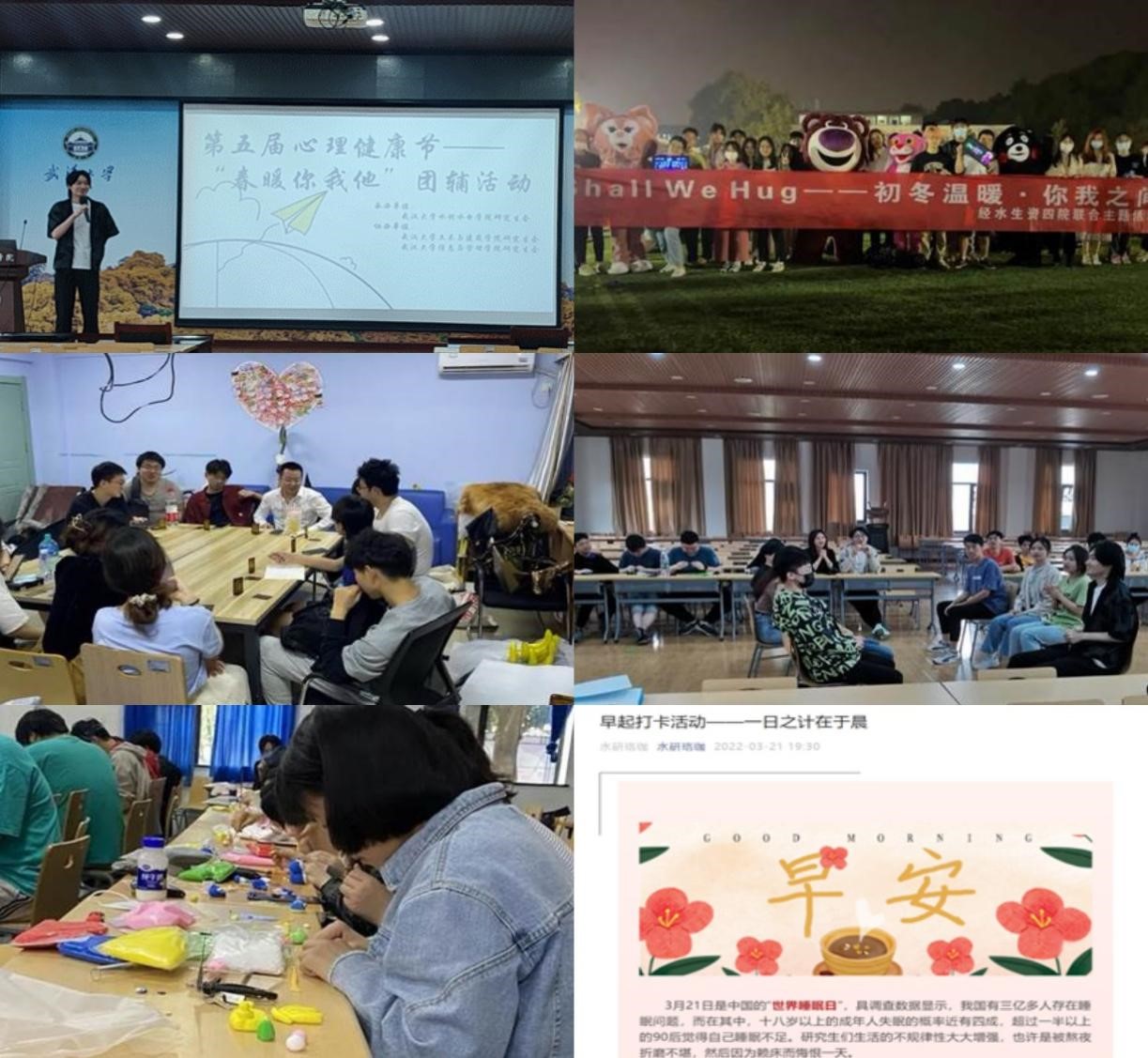发布心理健康讲座与各类团辅活动通知40余次 组织心理健康专题会议8次 举办心理健康教育相关活动17次 组织心理朋辈辅导9次 举办跨学院联谊活动7次 第五届研究生心理健康节中承办2个精品项目、2个重点项目、2个一般项目,获优秀组织单位 |