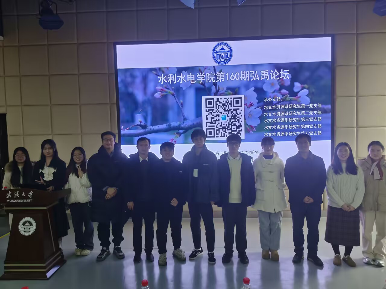 2025年1月8日下午,由共青团武汉大学委员会主办,学院分团委、学院研究生会学术科技部以及水文水资源系研究生第一至第五党支部联合承办的第160期研究生“弘禹论坛”在工学部六教401报告厅举办。本次活动邀请了水文水资源系刘德地老师与刘小宁老师作为专业评委老师,研究生辅导员陈曼雨、许笑星、万柳柳作为嘉宾出席活动。本次论坛主讲嘉宾为黄一凡、魏毅恒、韩亚静和范志鹏。