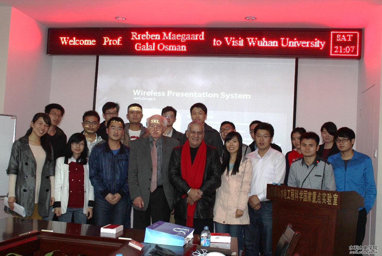 2014年4月12日晚,应我院博士研究生王现勋同学邀请,世界风能学会(WWEI)主席、北欧可再生能源研究中心名誉主任Preben Maegaard教授和世界风能学会(WWEI)副主席、世界风能协会(WWEA)副主席Galal Osman教授来我院讲学。此次学术报告会系IAHR武汉大学学生分会(以下简称“分会”)“科学研究与论文写作辅导系列讲座”第4期,由分会秘书张玉雪同学主持。报告会在国家重点实验室学术报告厅举行,来自我院和资环学院相关专业的学生饶有兴趣地参加了该报告会。