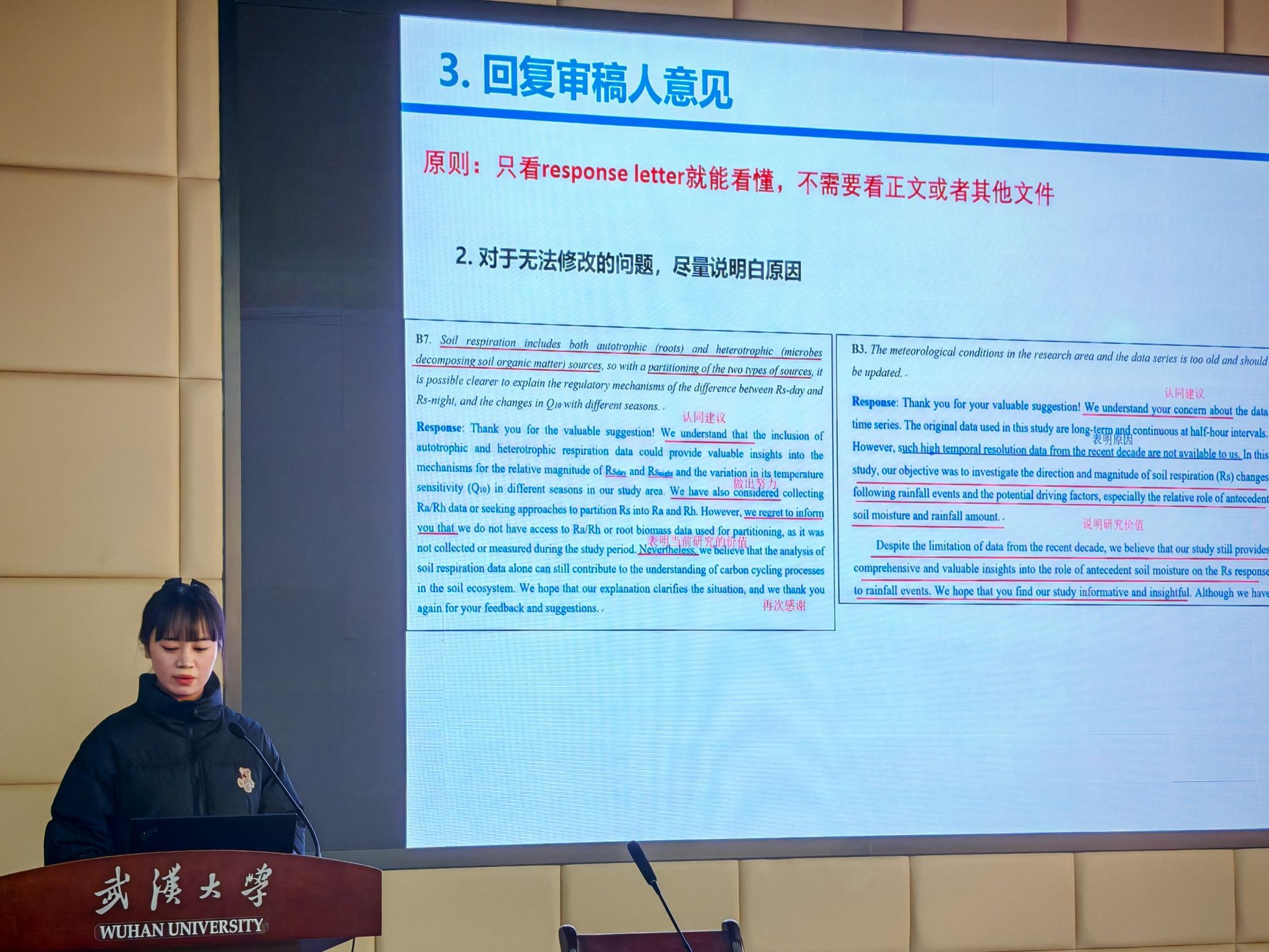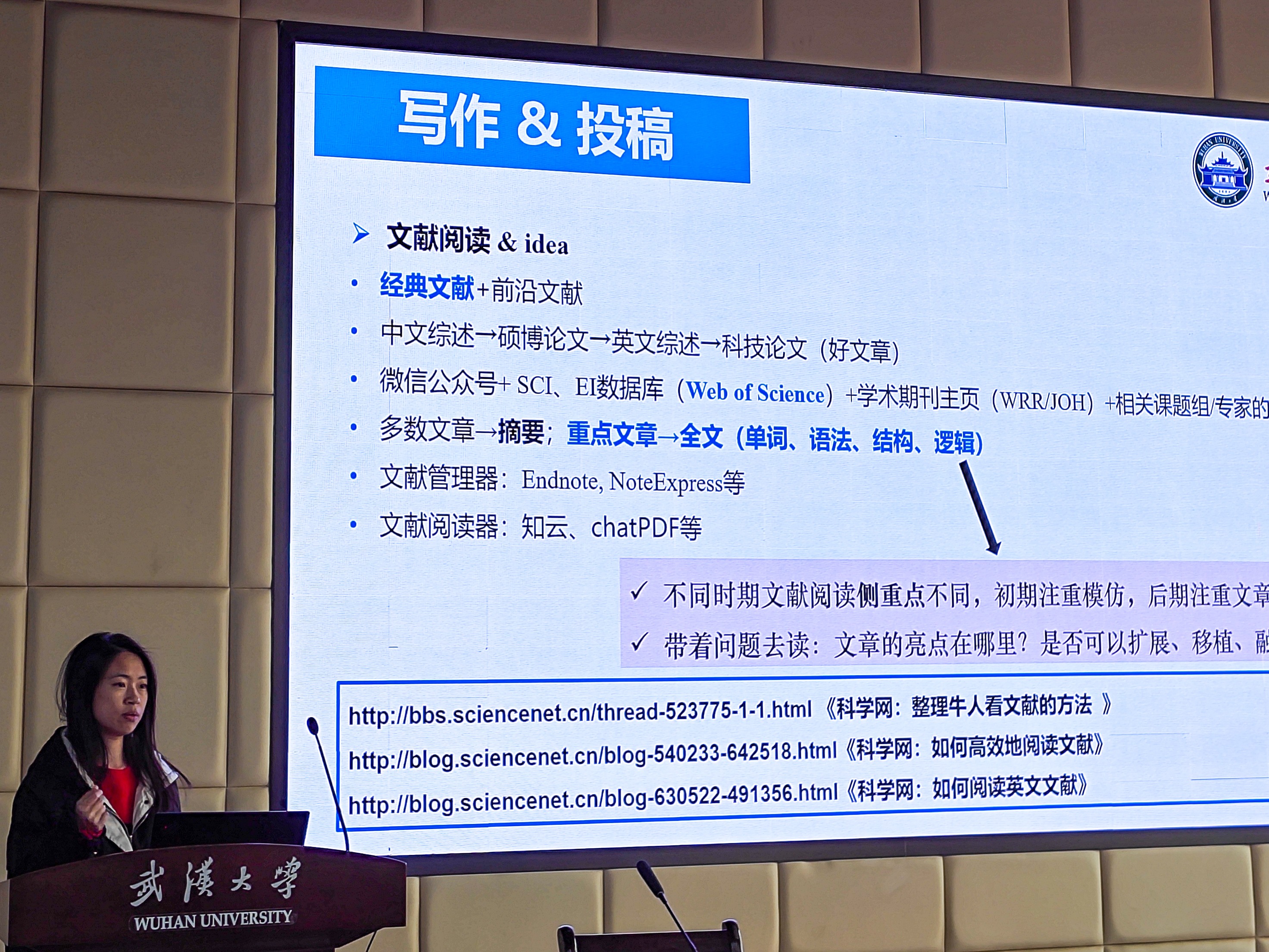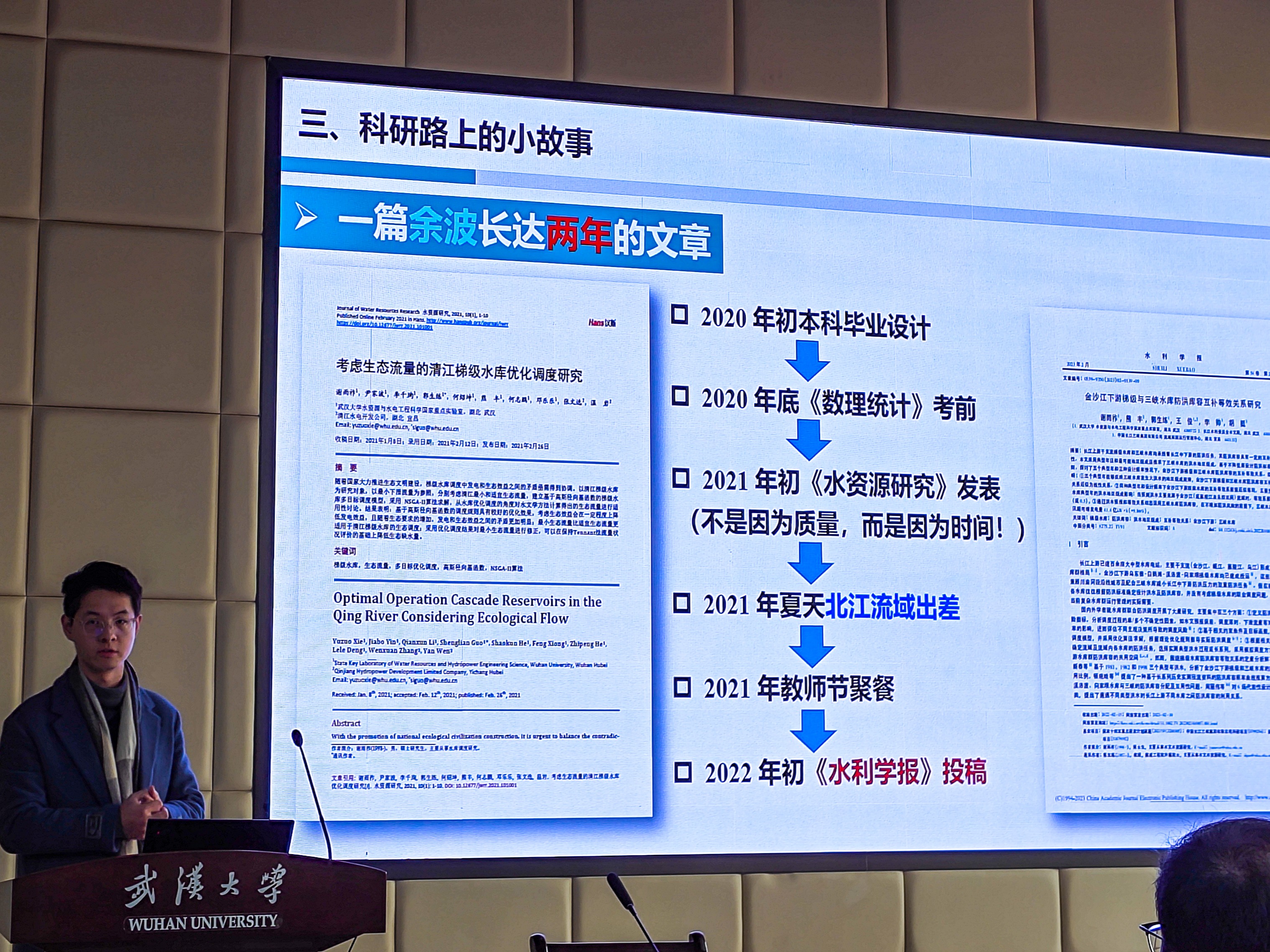 2024年12月18日-12月20日,由IAHR武汉大学学生分会主办的两场科研论文写作经验分享会在水利水电学院6401报告厅顺利举办。此次活动共邀请到孙蓝心等10位2023-2024学年研究生国家奖学金获得者作为优秀嘉宾,来分享科研写作的经验与心得。研究生辅导员陈曼雨、许笑星、万柳柳老师出席本次活动。