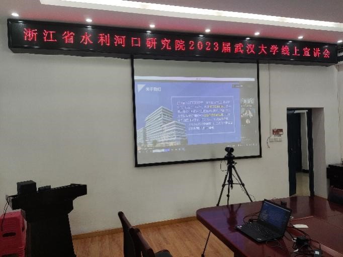 2022年9月29日上午9点,由水利水电学院研究生会就业实践中心主办的浙江省水利河口研究院2023届武汉大学招聘宣讲会在水利水电学院8教8105会议室顺利举行。此次宣讲会旨在为学院毕业生提供更多就业机会和发展平台。受到疫情的影响,本次宣讲会采用远程线上连线的形式举行。