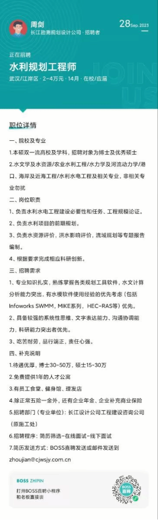 【招聘岗位】水工结构工程师、水利规划工程师