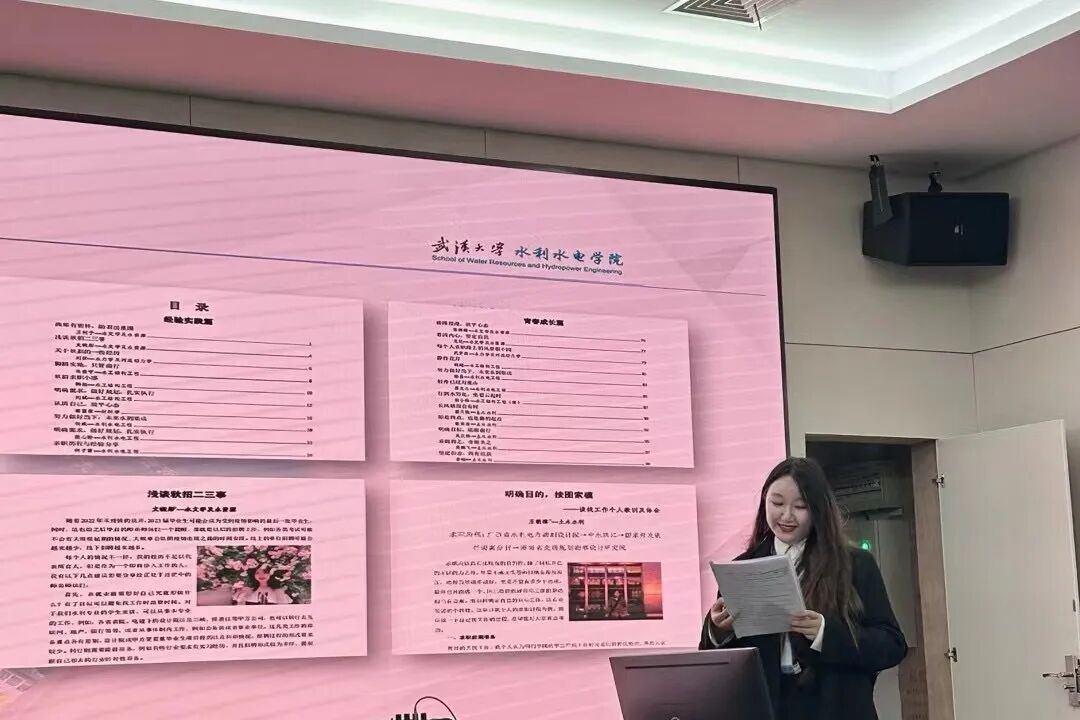郑美君同学自本科阶段起,便积极参与各类学生活动,投身于各项学生工作;研究生期间担任第二十三届研究生会主席团成员,现任水利工程系研究生第一党支部副书记。珞珈有爱水有情,心理健康常关注;全心全意为权益,有始有终付真心;在任期间为同学们的心理健康、权益保驾护航。前些日子作为武大智慧水利人的他们,受育反哺不负热爱,学科展示争创未来,荣获校级武汉大学研究生党支部风采大赛二等奖。