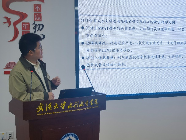 最后,博士生刘永介绍道:本研究虽然建立了基于植物水力学的分布式水文模型,在SWAT模型中引入冠层导度调控模块,增强了分布式水文模型蒸散发过程的物理机制描述。提高了SWAT模型对土壤水分与径流的预测能力。同时,改进后的模型能够合理的反映植被面临土壤干旱、大气干旱时的生存策略,而原模型无法表达出这种趋势。