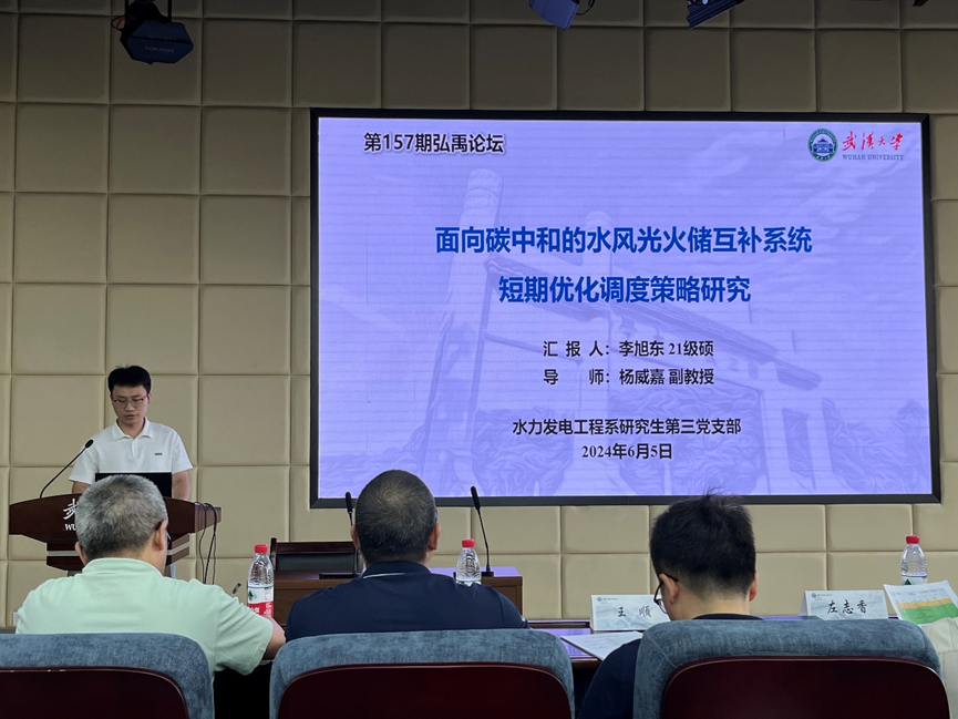2024年6月5日上午9:00,由武汉大学水资源工程与调度全国重点实验室与研究生会学术科技部共同主办的第157期研究生“弘禹论坛”在工学部第六教学楼6401如期举行。学院水力发电工程系蔡新华老师、李进平老师和智慧水利系王顺老师作为专业点评嘉宾出席,学院党委副书记左志香老师、研究生辅导员陈曼雨老师、许笑星老师、万柳柳老师出席本次论坛。主讲嘉宾为硕士生李旭东、博士生张翔宇和博士生郭威。本次论坛由水力发电工程系研究生第二至五党支部联合承办。