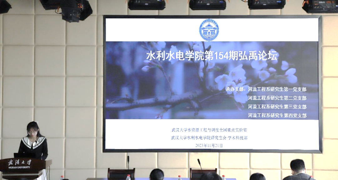 11月21日下午,由研究生会学术科技部主办的第154期研究生“弘禹论坛”在武汉大学工学部第六教学楼6401室举行。学院河流工程系陆晶老师、岳遥老师、邓珊珊老师作为嘉宾出席,学院党委副书记左志香老师、研究生辅导员陈曼雨老师、研究生辅导员许笑星老师也出席了本次论坛。主讲嘉宾为李昕、徐欢和曹玉芹。本次论坛由河流工程系研究生第一党支部、河流工程系研究生第二党支部、河流工程系研究生第三党支部和河流工程系研究生第四党支部联合承办。