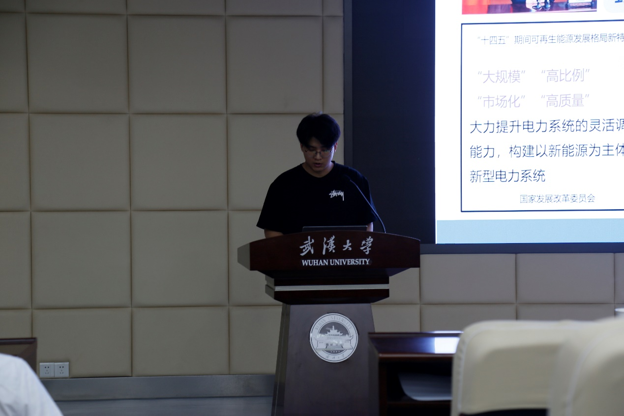 首先,李潇博士以《耦合远期资源价值的水-风-光互补系统竞标策略研究》为题进行学术报告。报告首先介绍了清洁能源互补发电系统在助力碳中和方面建树颇多、在各类电力体系、电力市场中也受到较多研究关注。大多数针对能源互补性的研究主要聚焦于日前电力市场,在该市场中,所有发电商和配电公司在前一天提交竞标曲线给电网,电网在第二天每一时刻对需求曲线和供给曲线进行匹配形成交叉点,根据这个交叉点确定该时刻的电价和所有发电商的发电量。因此,竞标曲线的制定极其重要,既决定了未来24h的负荷分配,同时还可以影响未来的电价。之后提出了本次报告以水-风-光互补电源为研究对象,在日前的竞标问题中既协调好远期的资源价值和短期的效益同时,又能够协调好各类资源的预见期,充分利用好所有预报信息。弥补了该类研究的空白。