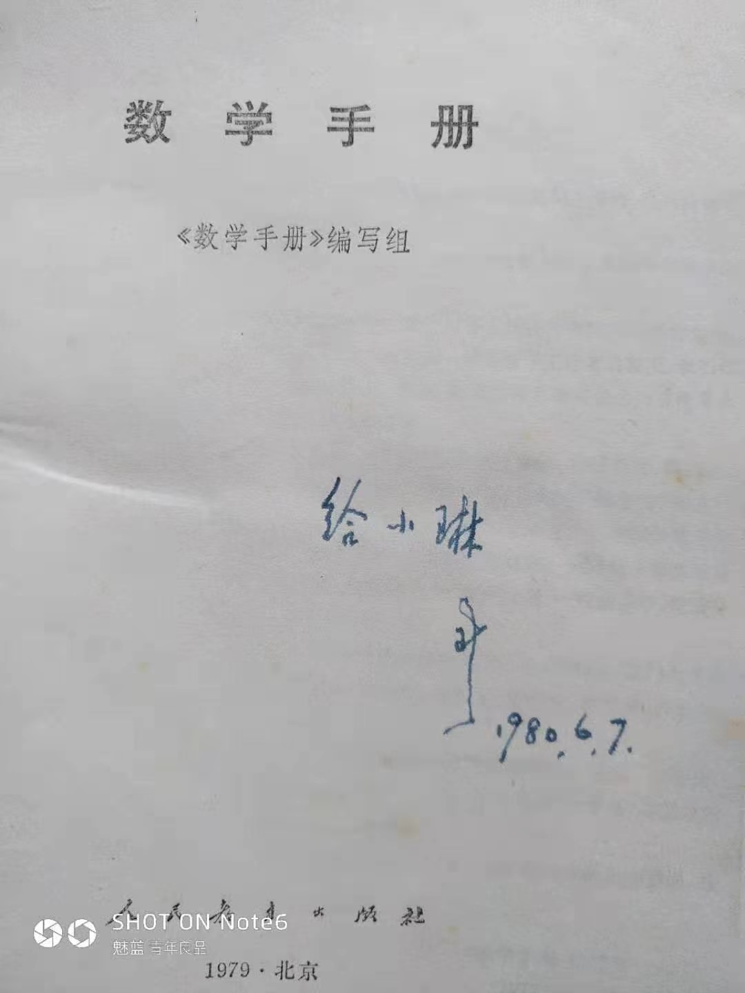张瑞瑾教授是当时武汉水利学院院长,是我国著名的泥沙工程专家,他和父亲都是国立武汉大学同期的学生,并同期考取了庚子赔款留学于美国加尼福利亚理工学院,父亲当时就读于IOWA大学。回国后两人同时来到武汉大学工作,两家人的孩子也都在武大附小上学,彼此往来较为频繁。文革期间,知青下放到了鄂西北山区。七七年恢复高考以后,我从湖北房县考取了武汉水利电力大学,在水力发电工程系学习。在校学习期间,张瑞瑾教授于一九八零年六月七日将一本亲笔签名的《数学手册》送给我,并鼓励我好好学习,这本手册至今珍藏在家。
